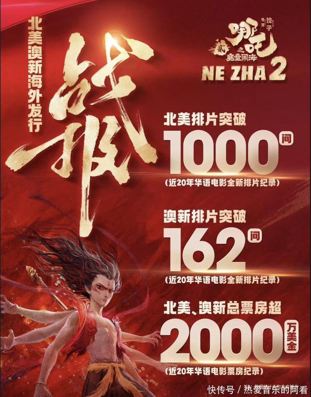 另外,咱们不行只是把眼神局限在香港这片地皮上,《哪吒2》在国外的推崇相通可圈可点,值得咱们给以高度的关怀。范围2月28日,在北好意思地区,它就像一颗东方文化的种子在那儿生根发芽,洞开出娇娆的花朵,其总票房达到了1618.6万好意思元(约1.18亿元)。这个收成创下了《霍元甲》之后华语片的最佳收成,就像特地前东谈主成为新的传奇。在澳大利亚,它相通是一都繁重卓绝,总票房达到了585万澳元(约2645.5万元),一举冲破了《好汉》保握了21年的华语片记载。这么的收成,果然不错说黑白常成效了。这就如归并个使臣,带着中国的文化和电影的魔力,走向了寰宇的舞台,在国际上发出了属于中国电影的最强音。