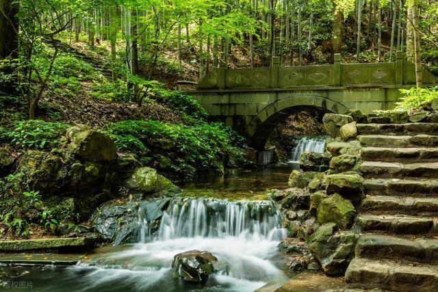 云栖竹径,竹林,净水,亭台楼阁,都是绿意。