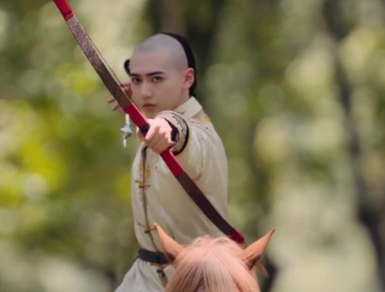 接着《还珠格格》名形式随即到来:只见五阿哥(焉栩嘉饰)搭弓射箭,利箭精确绕过小鹿,正中小燕子胸口。