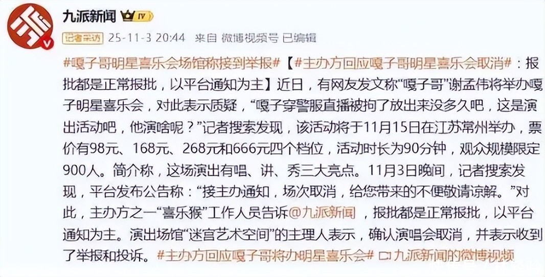 电影被撤换尚未平息,他又传来行为取消的音问——原定于常州举办的“明星喜乐会”献艺被主理方要紧叫停。