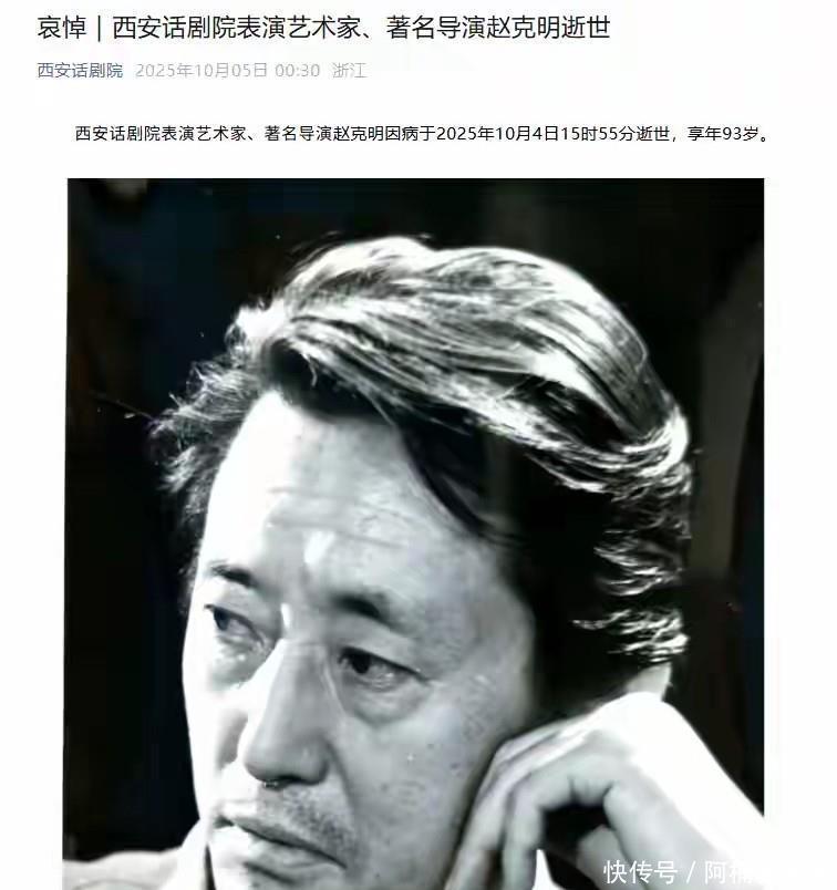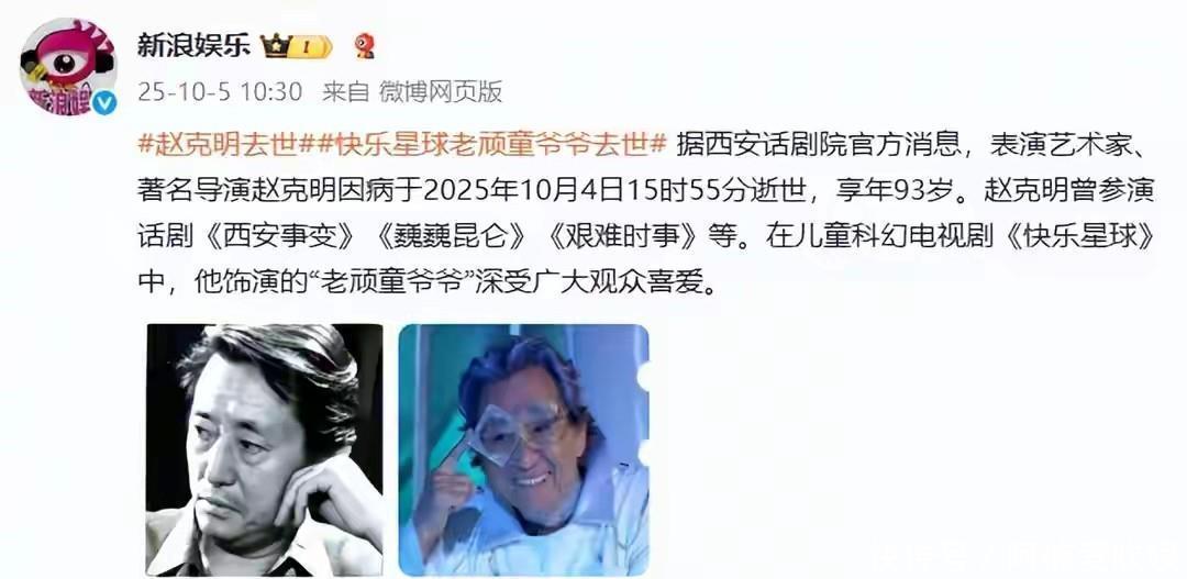 10月5日,多家媒体报谈了一个令东谈主痛心的讯息:着名演员赵克明因病于10月4日物化,享年93岁。